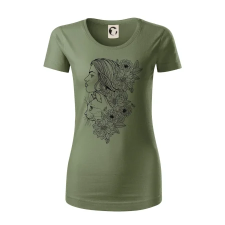 Triko pro každou ženu, která žije v symbióze s přírodou a především se svojí kočkou. Skvělý dárek pro kámošku co má ráda kočky, triko s abstraktním motivem ženy a kočky je super prezent.
