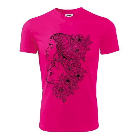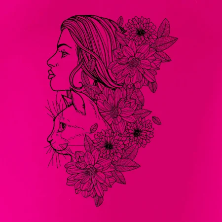 Triko pro každou ženu, která žije v symbióze s přírodou a především se svojí kočkou. Skvělý dárek pro kámošku co má ráda kočky, triko s abstraktním motivem ženy a kočky je super prezent.