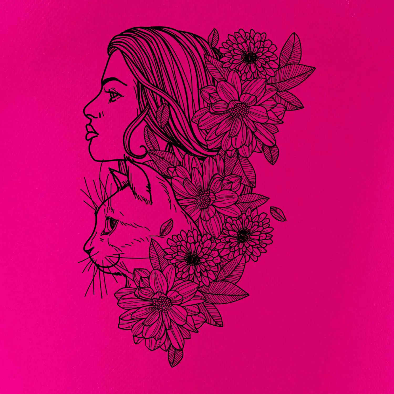Žena a kočka - kreslená