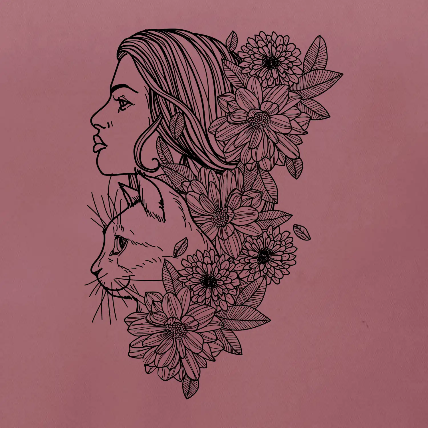 Žena a kočka - kreslená