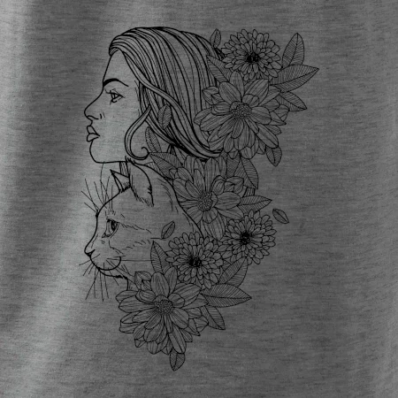 Triko pro každou ženu, která žije v symbióze s přírodou a především se svojí kočkou. Skvělý dárek pro kámošku co má ráda kočky, triko s abstraktním motivem ženy a kočky je super prezent.
