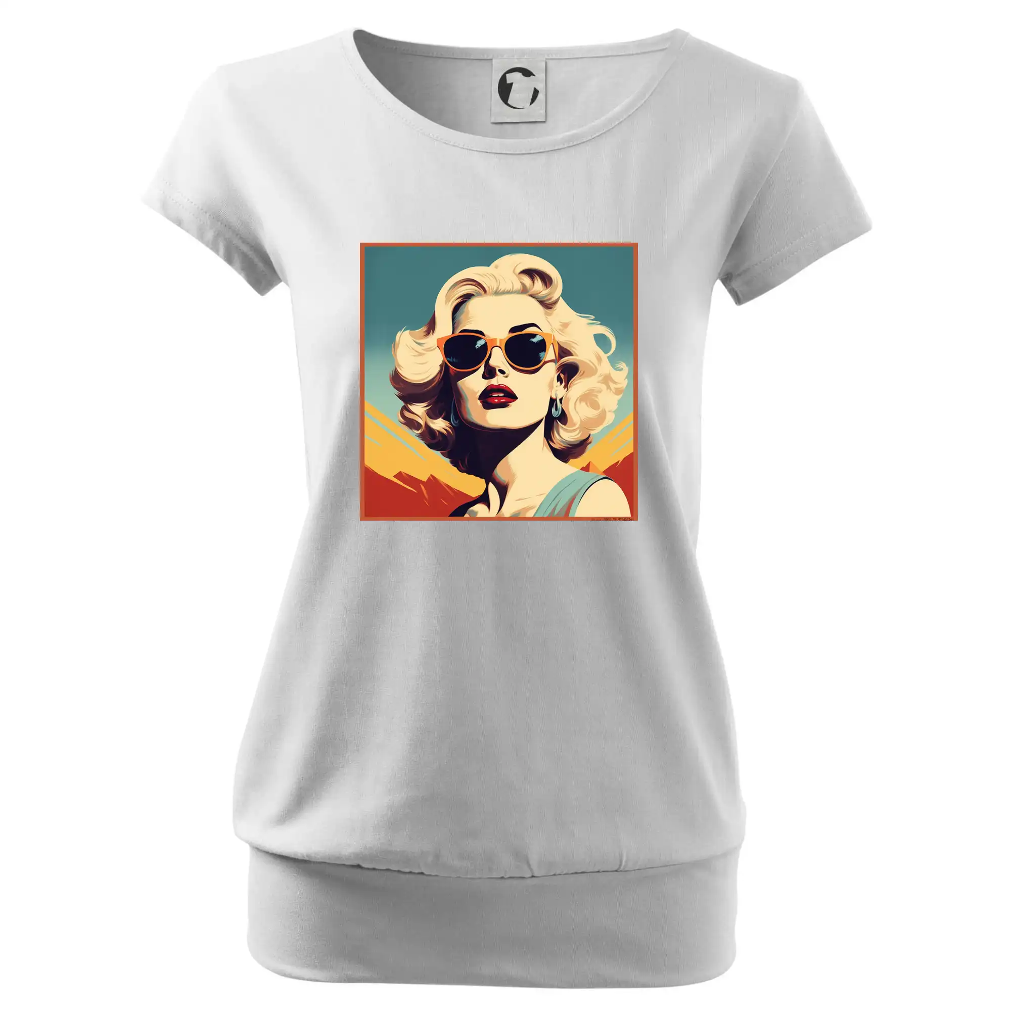 Trendové dámské triko s velmi krátkým rukávem, volnějšího střihu, v dolním kraji všité do širokého lemu. Kulatý průkrčník s úzkým lemem ze shodného materiálu.