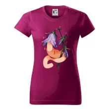 Trendové dámské triko s velmi krátkým rukávem, volnějšího střihu, v dolním kraji všité do širokého lemu. Kulatý průkrčník s úzkým lemem ze shodného materiálu.