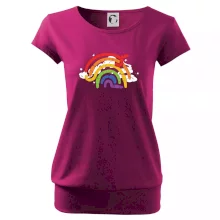 Trendové dámské triko s velmi krátkým rukávem, volnějšího střihu, v dolním kraji všité do širokého lemu. Kulatý průkrčník s úzkým lemem ze shodného materiálu.
