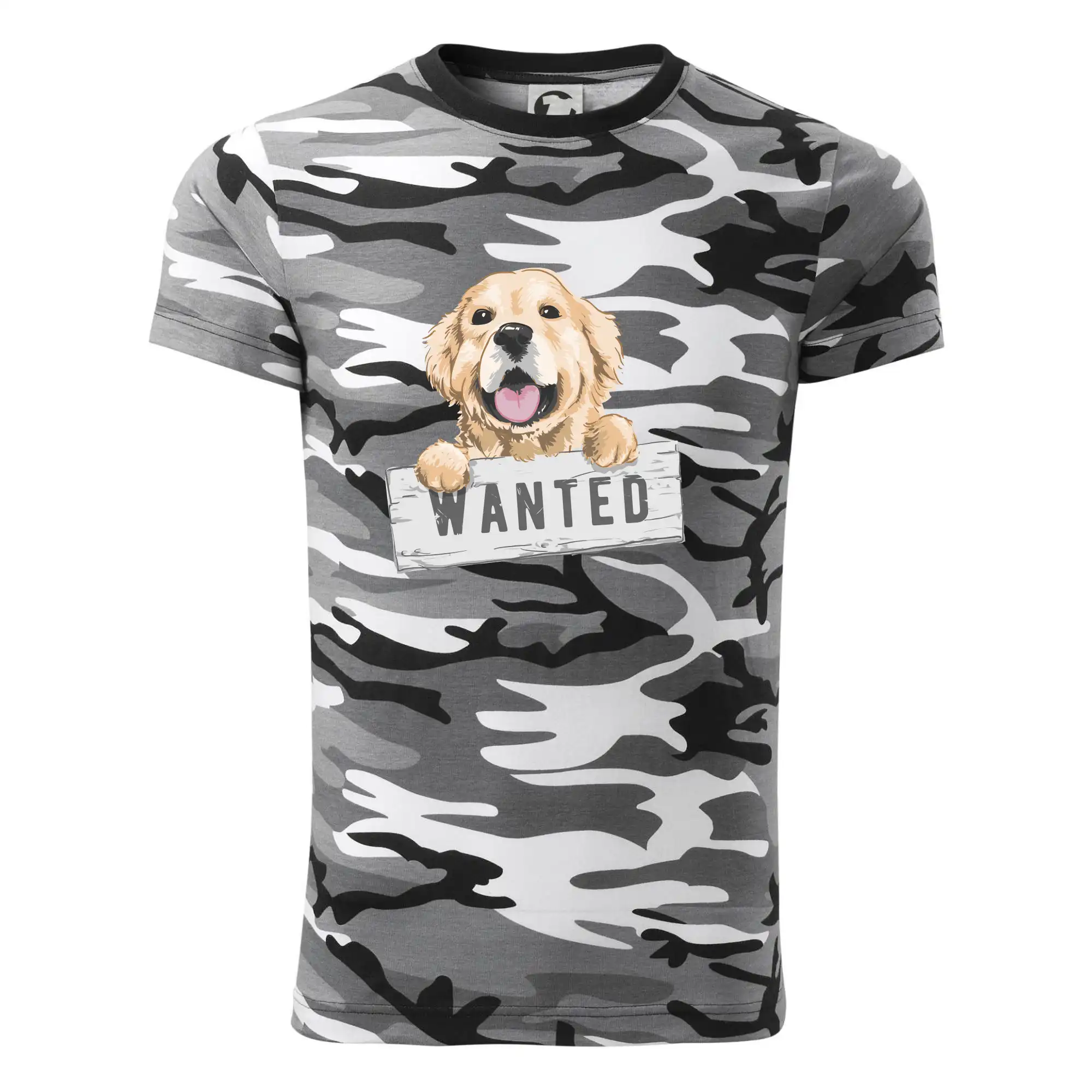Tričko střední gramáže v barvách camouflage. Střih s bočními švy. Lem průkrčníku ze žebrového úpletu s přídavkem 5 % elastanu. Vnitřní část zadního průkrčníku začištěna páskou v barvě camouflage.