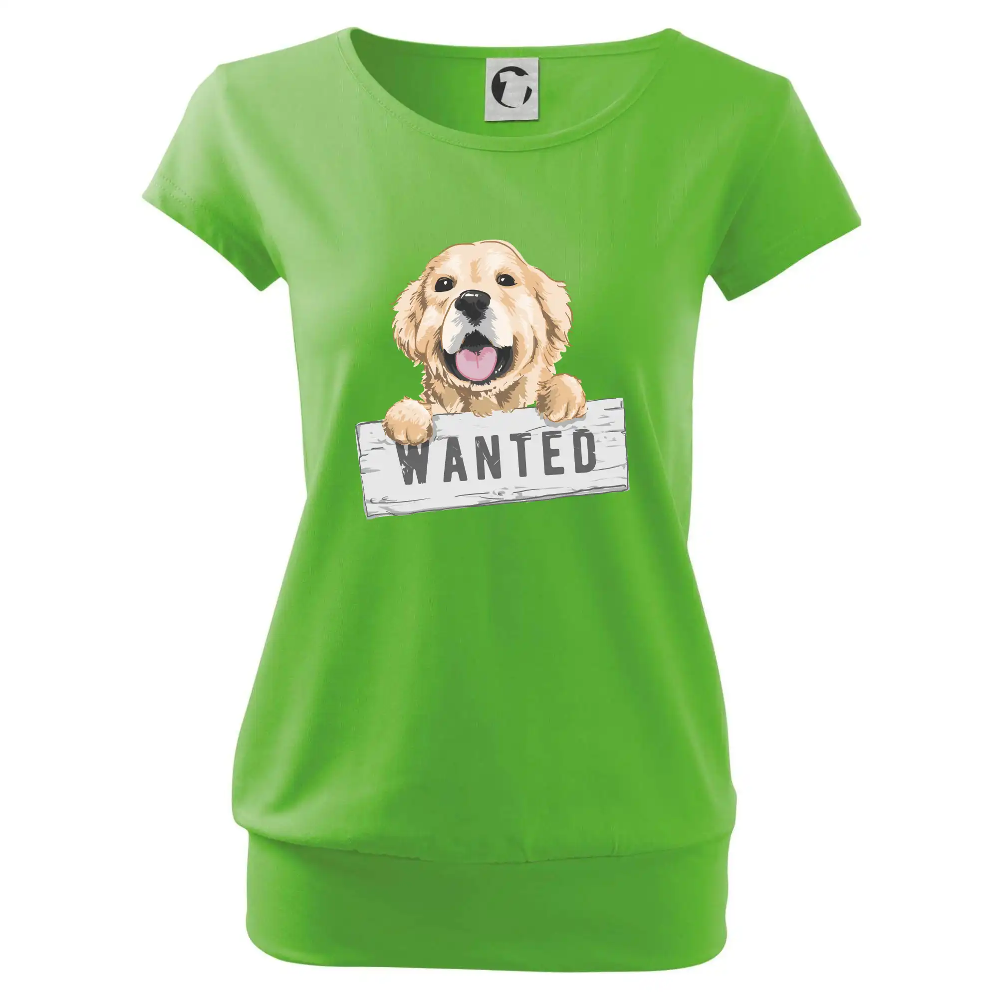 Trendové dámské triko s velmi krátkým rukávem, volnějšího střihu, v dolním kraji všité do širokého lemu. Kulatý průkrčník s úzkým lemem ze shodného materiálu.