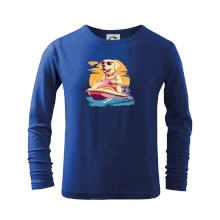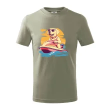 Zlatý retrívr na vodním skútru