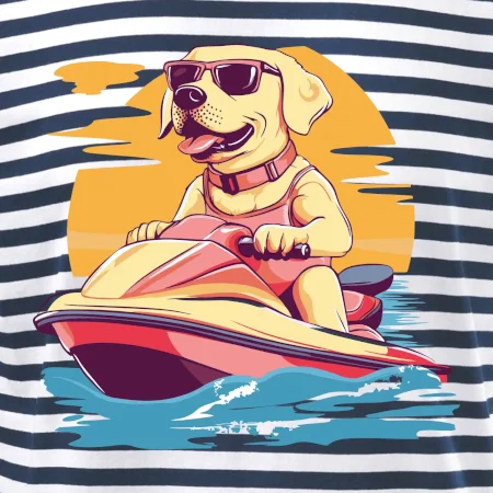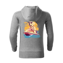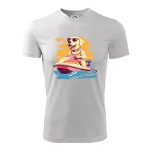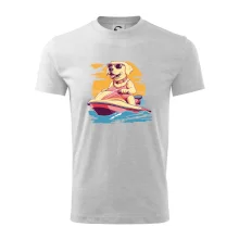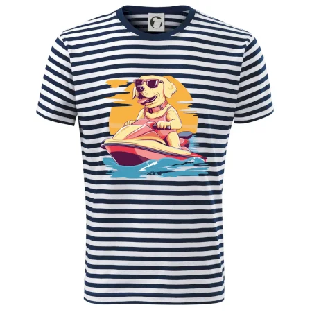 Zlatý retrívr na vodním skútru
