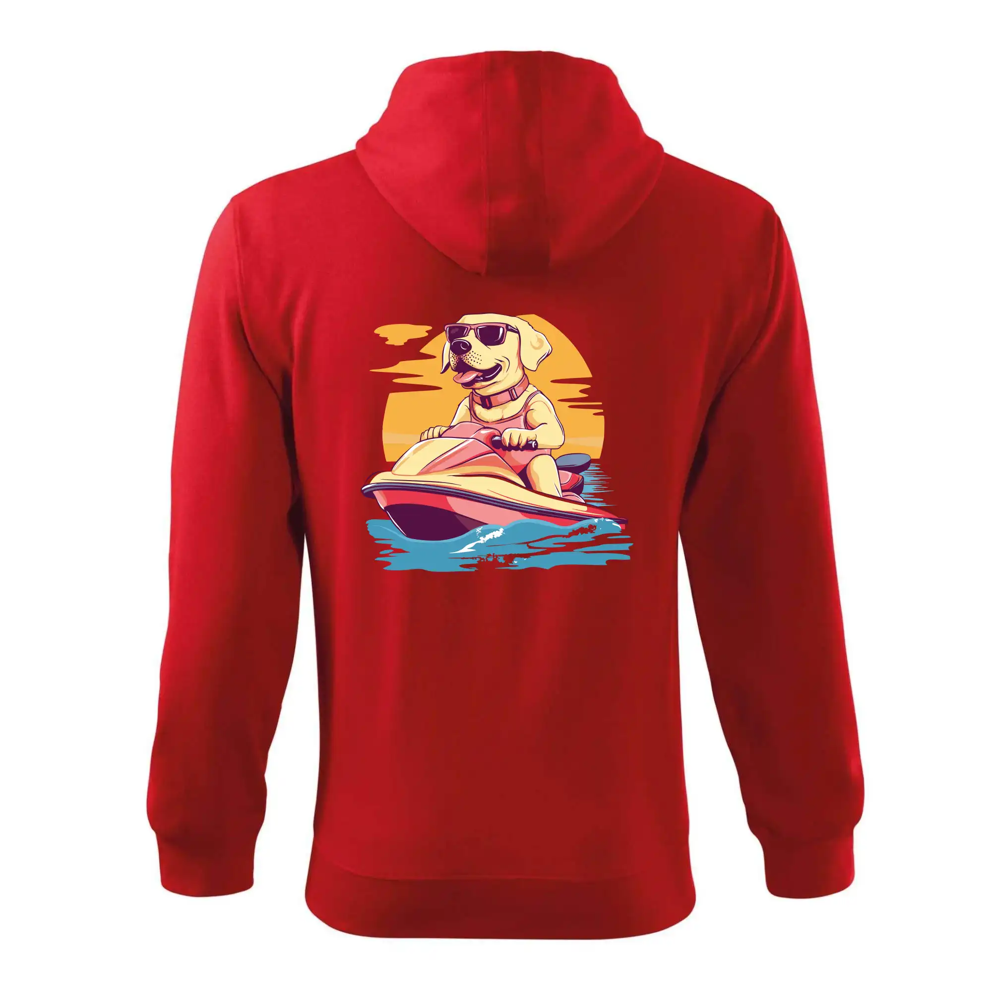Zlatý retrívr na vodním skútru