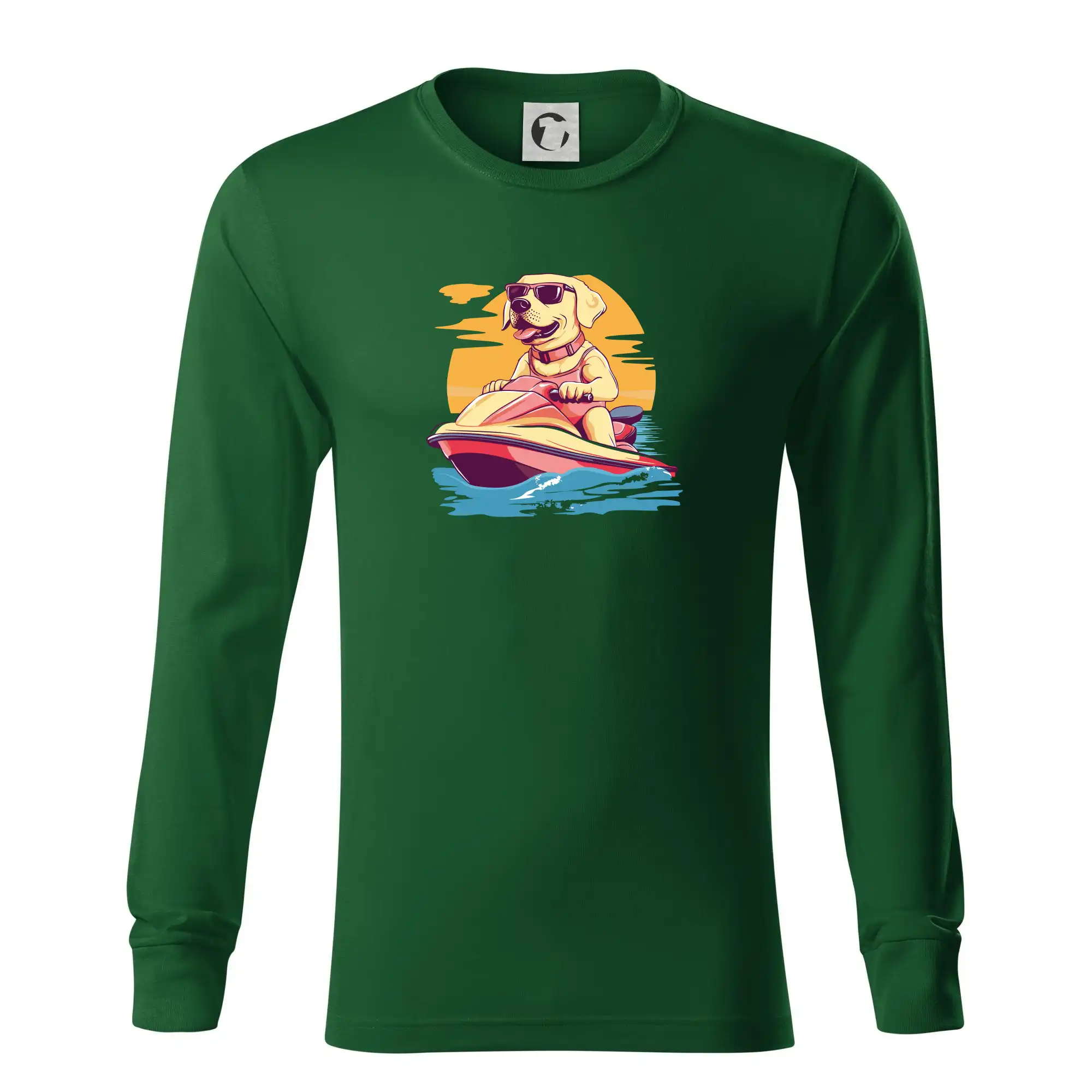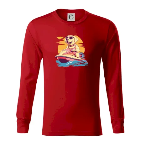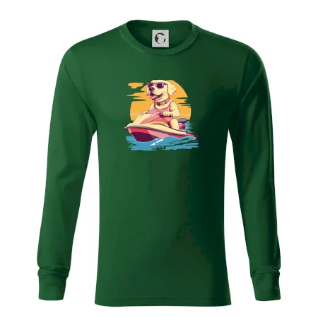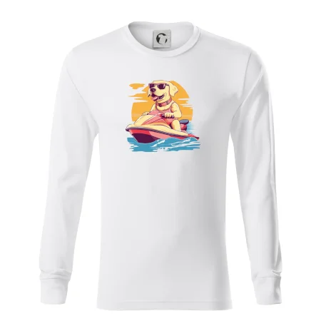Zlatý retrívr na vodním skútru