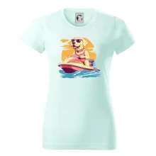Zlatý retrívr na vodním skútru