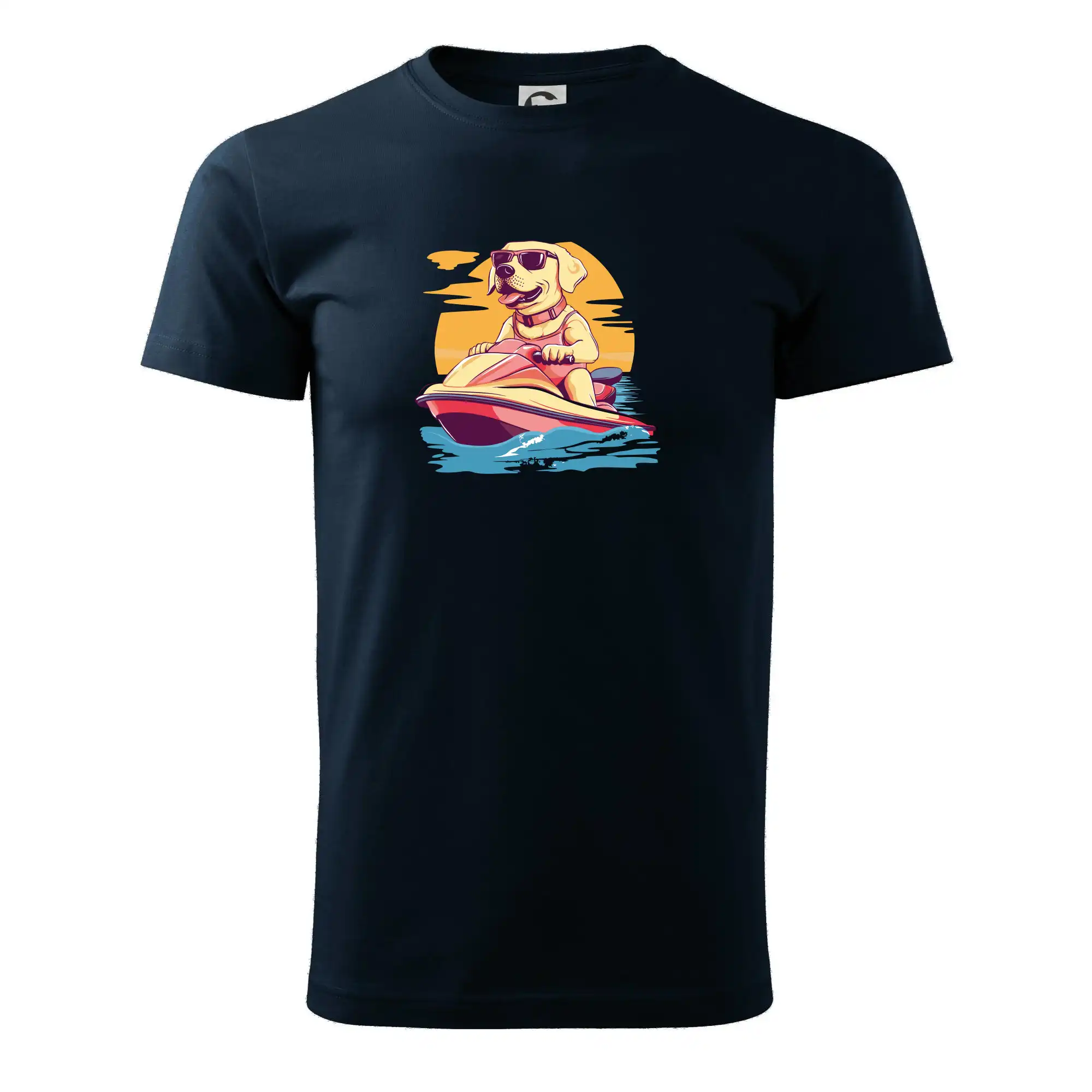 Zlatý retrívr na vodním skútru