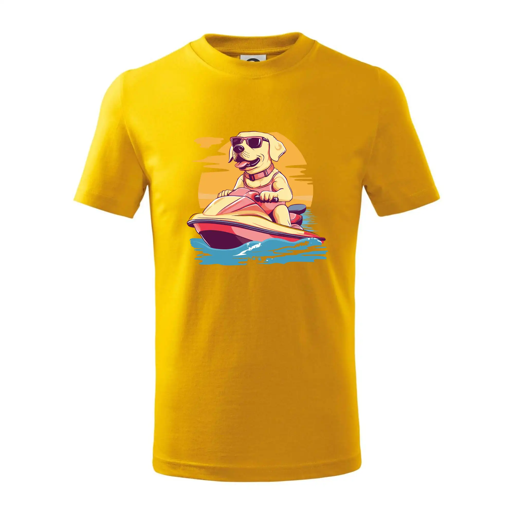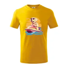 Zlatý retrívr na vodním skútru