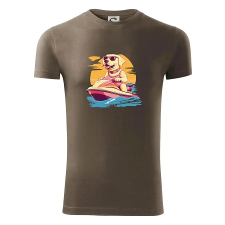 Zlatý retrívr na vodním skútru