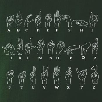 Zástěra s potiskem znakové řeči. ️ Originální vintage design nejen pro neslyšící. Učte se znakovat při vaření! Praktický a poučný dárek. Koupit zde.
