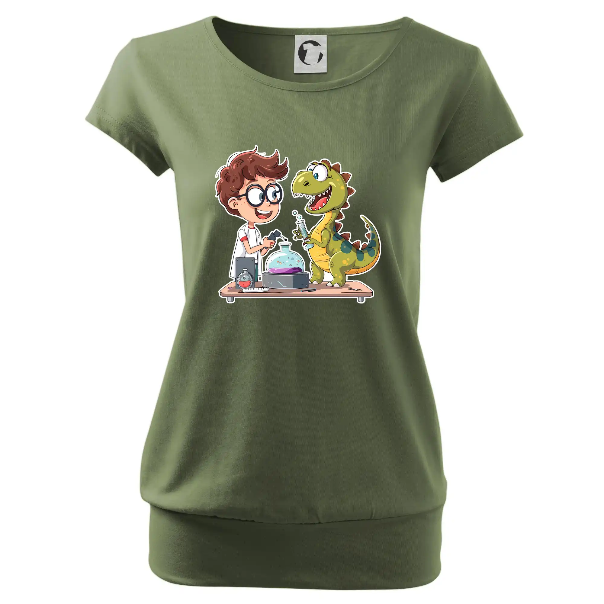 Trendové dámské triko s velmi krátkým rukávem, volnějšího střihu, v dolním kraji všité do širokého lemu. Kulatý průkrčník s úzkým lemem ze shodného materiálu.
