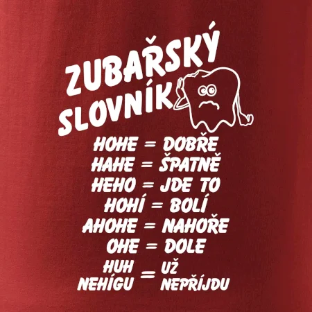 Vtipné tričko pro zubaře. S plnou pusou se špatně mluví. A ještě horší je to, když jste zrovna u zubaře! Se zubařským slovníkem vám už budou všichni rozumět! Vtipný dárek pro zubaře.