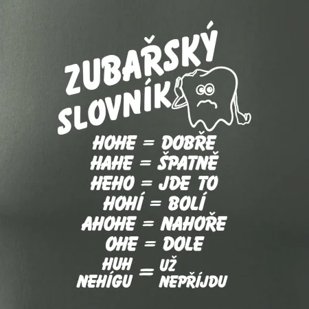 Vtipné tričko pro zubaře. S plnou pusou se špatně mluví. A ještě horší je to, když jste zrovna u zubaře! Se zubařským slovníkem vám už budou všichni rozumět! Vtipný dárek pro zubaře.