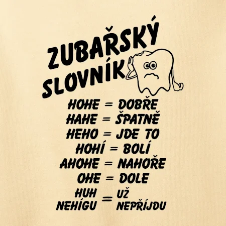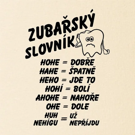 Vtipné tričko pro zubaře. S plnou pusou se špatně mluví. A ještě horší je to, když jste zrovna u zubaře! Se zubařským slovníkem vám už budou všichni rozumět! Vtipný dárek pro zubaře.