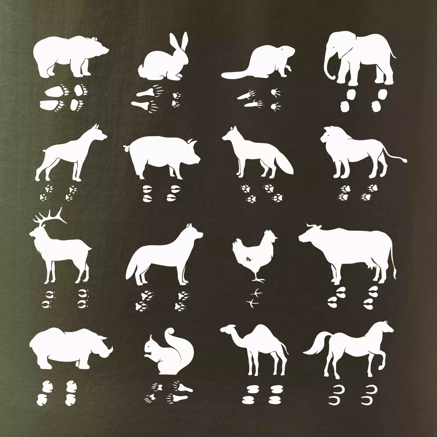 Zvířecí stopy s obrázkem zvířete - stopy zvířat